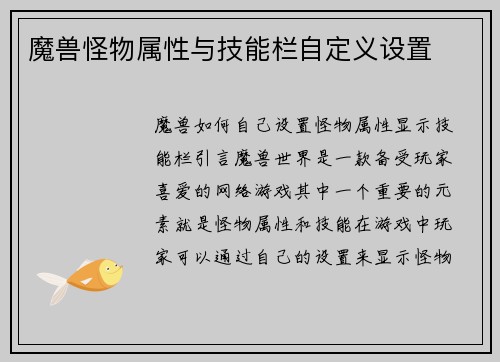 魔兽如何自己设置怪物属性显示技能栏 引言: 魔兽世界是一款备受玩家喜爱的网络游戏,其中一个重要的元素就是怪物属性和技能。在游戏中,玩家可以通过自己的设置来显示怪物的属性和技能栏,这对于玩家来说非常重要...
